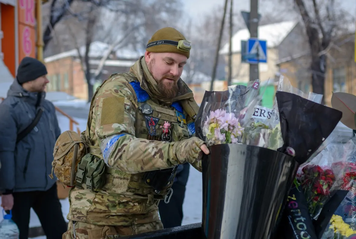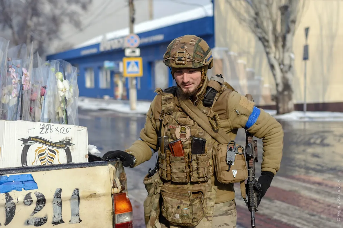Ще згадую 8 березня, в той день запам’яталась зустріч з двома «азовцями» біля розбитого магазину квітів. Навіть під час війни хлопці вирішили привітати жінок, назбирали квітів, завантажили їх в автівку, щоб відвезти до шпиталю. Вже пізніше я дізнаюсь, що один з них, Мирослав Вишневий «Джиксер» загинув 12 березня, а другий, Максим, пропав без вісті, намагаючись виплисти на човні з «Азовсталі». І ті фотографії, які я зробив того дня, виявились їх останніми фото…