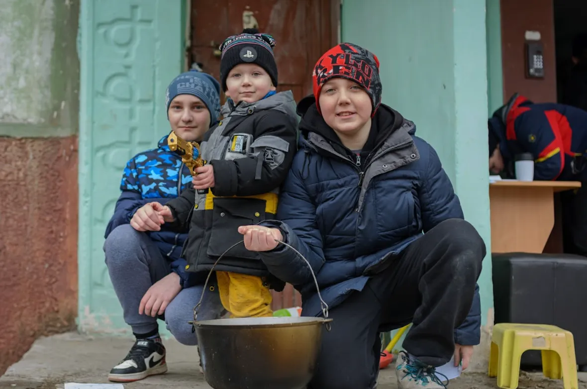 Коли місто було майже все захоплене та опір чинили тільки військові на «Азовсталі», з’явилися польові кухні від днр. Така стала й неподалік нашого будинку. Зрозуміло, що мені було огидно там брати їжу, але просто не мав вибору. Підійшов до кухні, розповів про ситуацію. Коли кухар почув про дітей, розчулився, розповів про себе, що не військовий, що мобілізували примусово, навіть автомат у нього дерев’яний. І так, щоб ніхто не бачив, дав мені згущене молоко та печиво, ну й, звісно, кашу, яку вони там варили. Іще пізніше повезли гуманітарні набори фурами. На коробках літера «Z» та напис «Своих не бросаем!» Щоб отримати цю «допомогу», треба було відстоювати величезні черги. Але ми відстоювали й брали ці коробки. Вимушені були брати, щоби вижити.